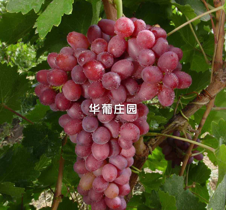 克瑞森:是美國加州繼紅提葡萄之后推出的又一無核葡萄品種。1997年由農(nóng)業(yè)部葡萄新品種項(xiàng)目課題組引進(jìn)我國,經(jīng)過4年在國內(nèi)試種,我國葡萄專家在綜合考察其生長狀況、果實(shí)性狀和市場前景后認(rèn)為,該品種是較有發(fā)展?jié)摿Φ臒o核葡萄品種。果實(shí)亮紅色,充分成熟后為紫紅色,上有較厚白色果霜,橢圓形。果穗中等大,有歧肩,圓錐形。平均穗重500克。果肉淺黃色,半透明肉質(zhì),果肉較硬,果皮中等厚,不易與果肉分離,味甜,低酸,品質(zhì)極佳。 |